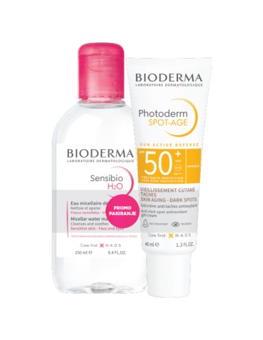 Bioderma Photoderm SPOT-AGE SPF 50 krema + Sensibio H2O Promo pakiranje.