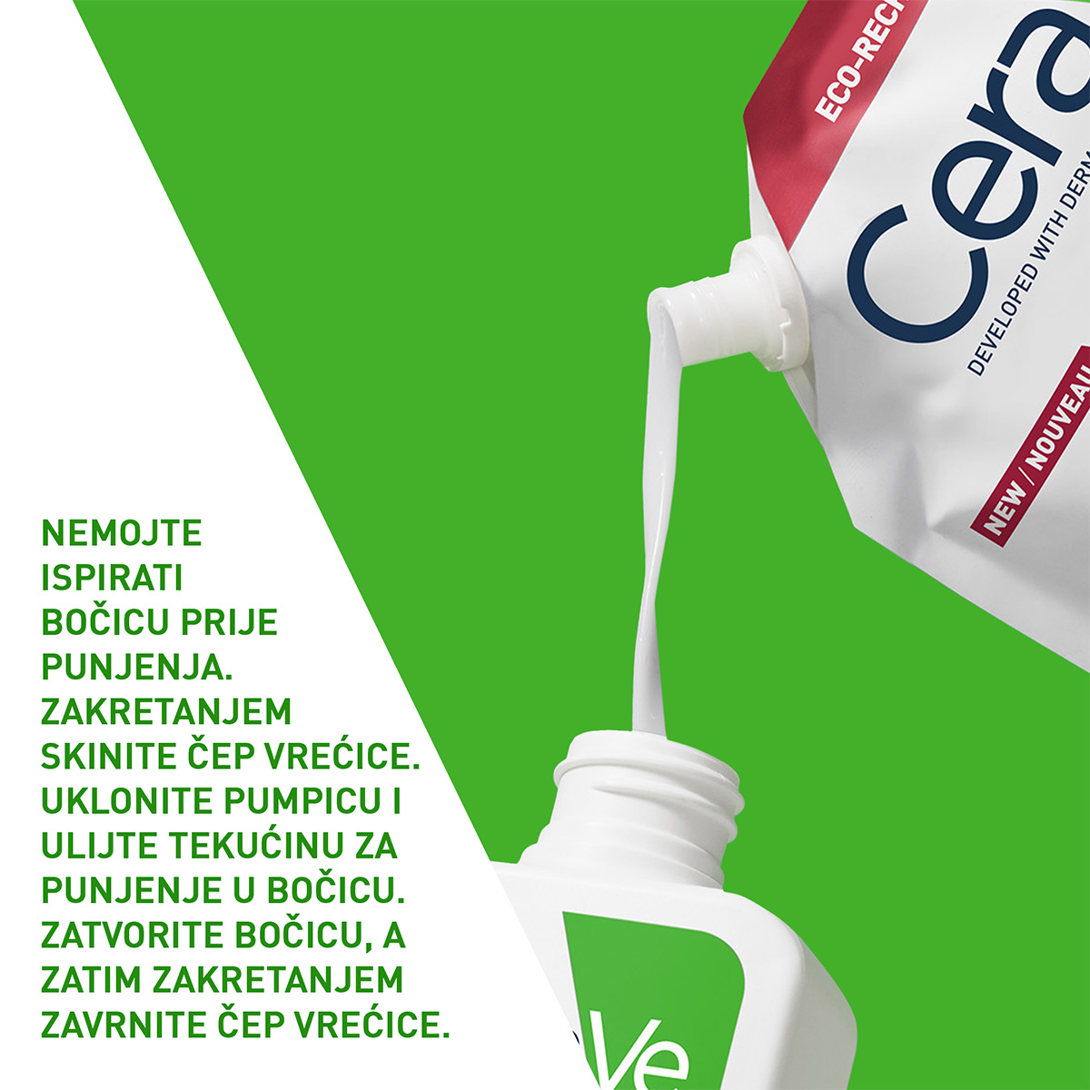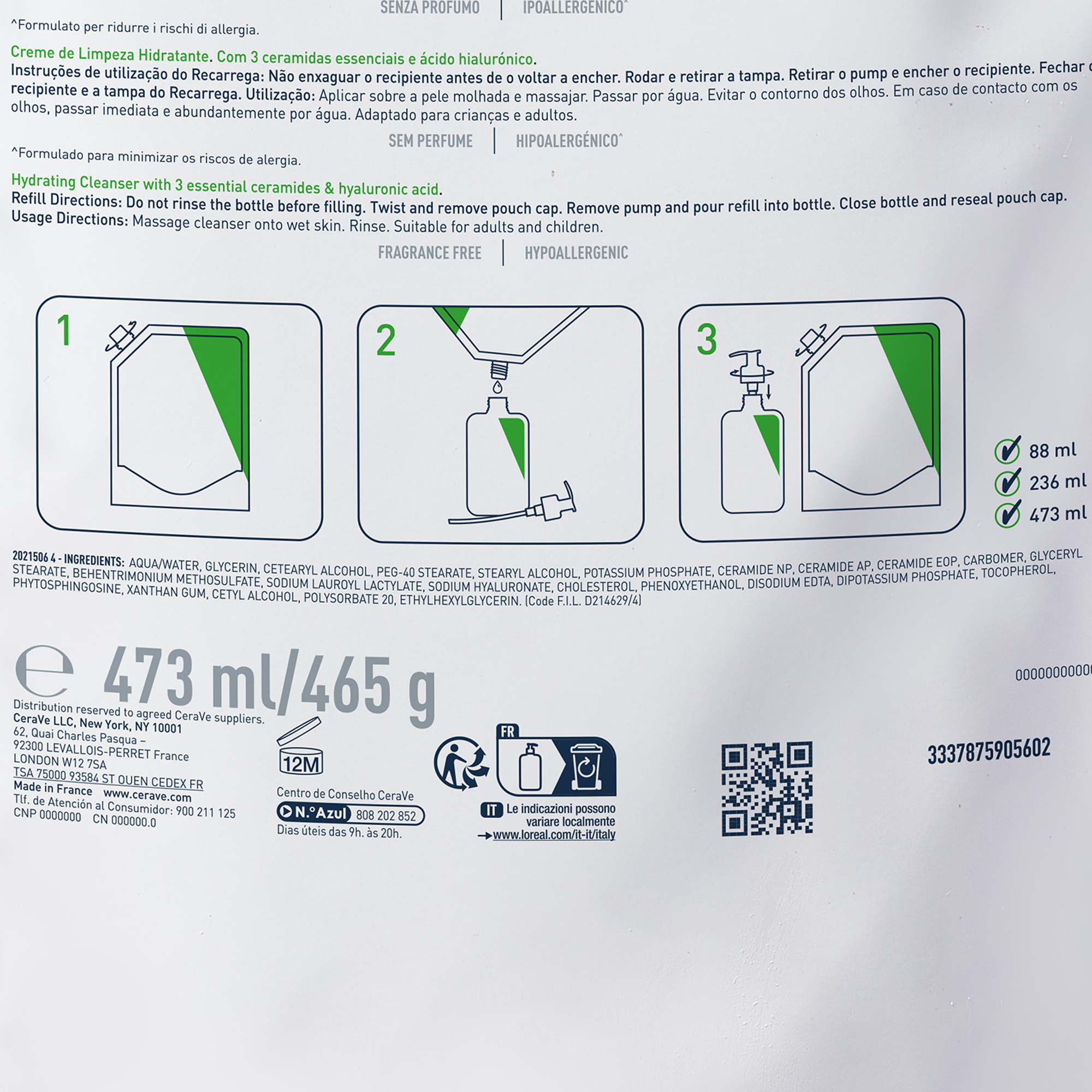 Čisti i hidratizira bez narušavanja zaštitne barijere kože lica i tijela. Sadrži 3 esencijalna ceramida i hijaluronsku kiselinu. BEZ MIRISA|HIPOALERGENO. -77% plastike u odnosu na dvije bočice od 236 ml.