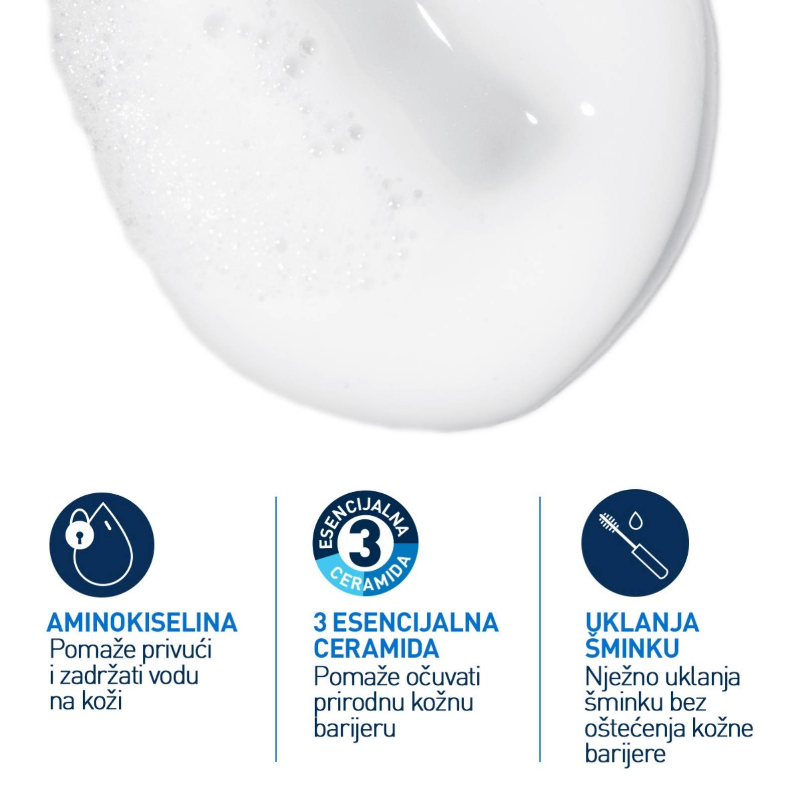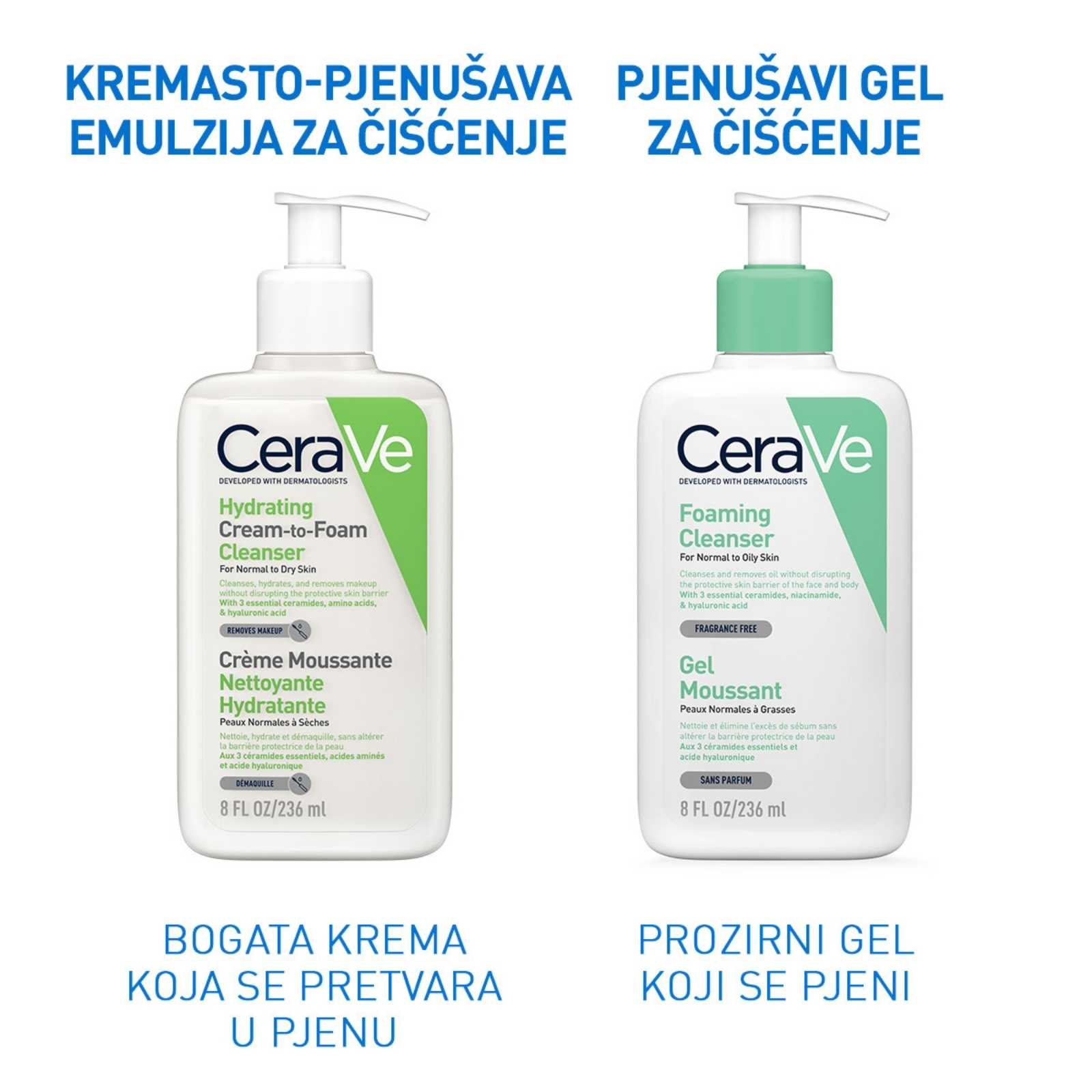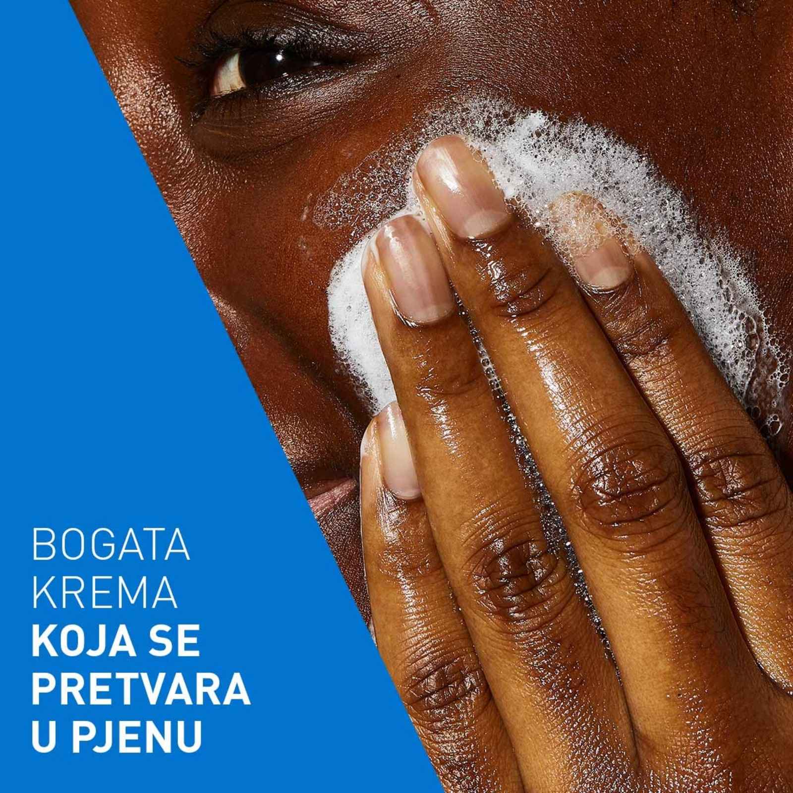 Razvijena u suradnji s dermatolozima, Hidratantna kremasto-pjenušava emulzija za čišćenje CeraVe Cream-to-Foam prvo ima kremastu teksturu, a kada je umasirate u kožu, zajedno s vodom pretvara se u prozračnu pjenu. Učinkovito uklanja nečistoće i dekorativnu kozmetiku, a pritom ne utječe negativno na prirodnu vlažnost kože i ne ostavlja kožu zategnutom i suhom.