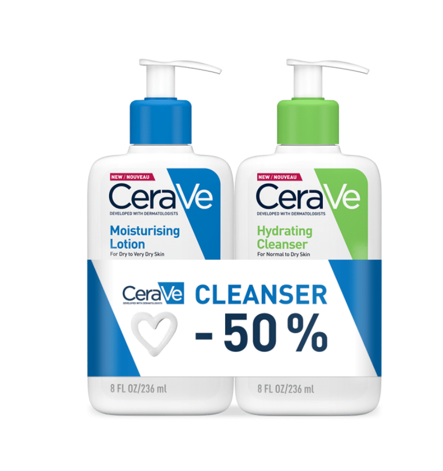 CeraVe Hidratantni losion za normalnu do suhu kožu, 236 ml + 50% POPUST CeraVe Hidratantna emulzija za čišćenje za normalnu do suhu kožu, 236 ml