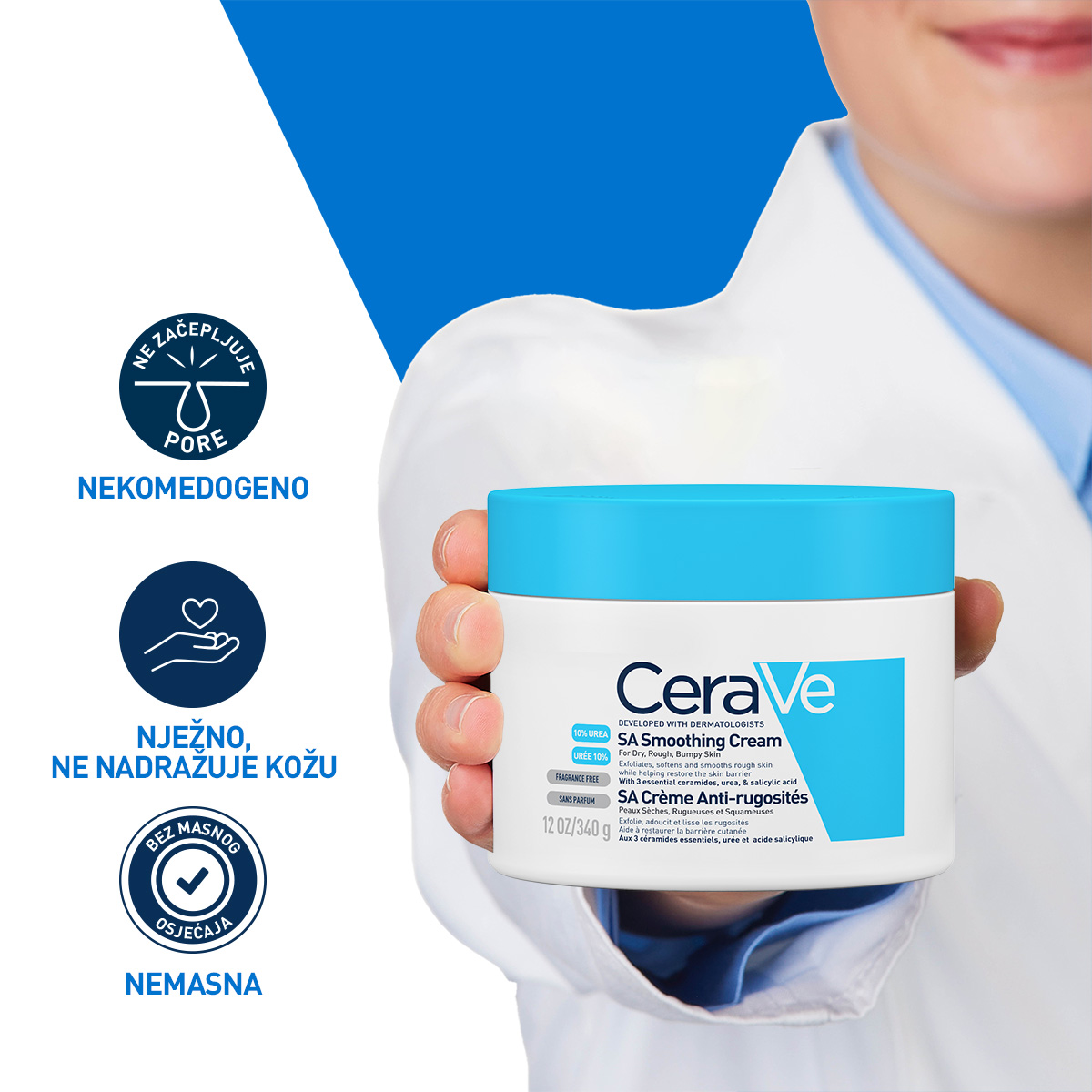 • Preporučuje se upotreba sa SA gelom za čiščenje suhe i grube kože CeraVe.