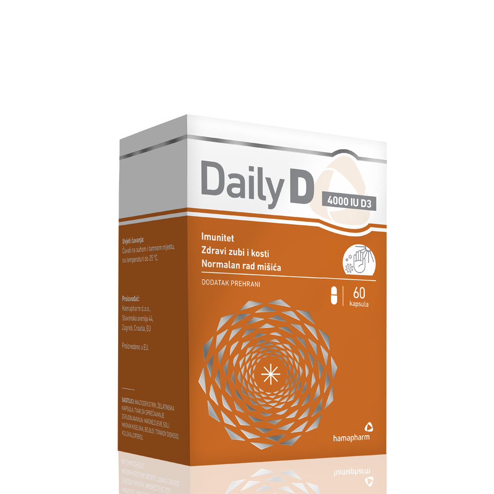 Daily D 4000 IU kapsule sadrže Vitamin D3 (kolekaciferol) u dozi od 4000 IU u samo jednoj kapsuli.