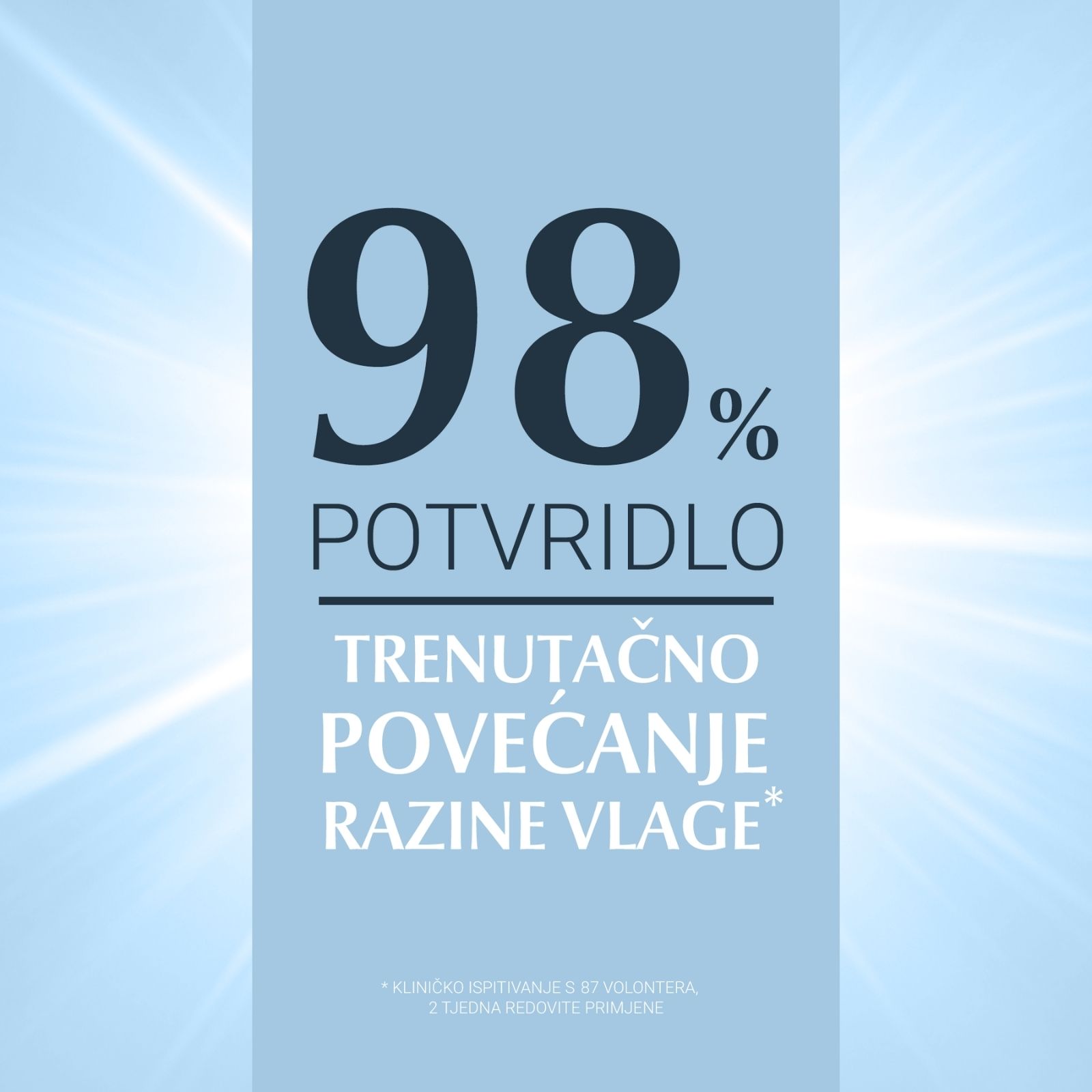 Zahvaljujući svojoj baršunastoj i laganoj teksturi, krema se brzo upija i ostavlja kožu ugodno hidratiziranom, bez osjećaja težine. Ublažava osjećaj zategnutosti i čini kožu glađom, mekšom i podatnijom tijekom cijelog dana. Formula je obogaćena zaštitnim faktorom SPF 25 i UVA zaštitom, koji pomažu spriječiti oštećenja uzrokovana sunčevim zračenjem te prijevremeno starenje kože.