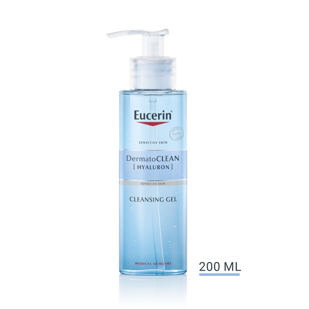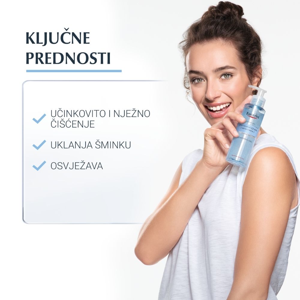Gel za svakodnevno čišćenje normalne i mješovite kože – Eucerin DermatoCLEAN [HYALURON] – klinički i dermatološki dokazano  pogodan je za osjetljivu kožu.