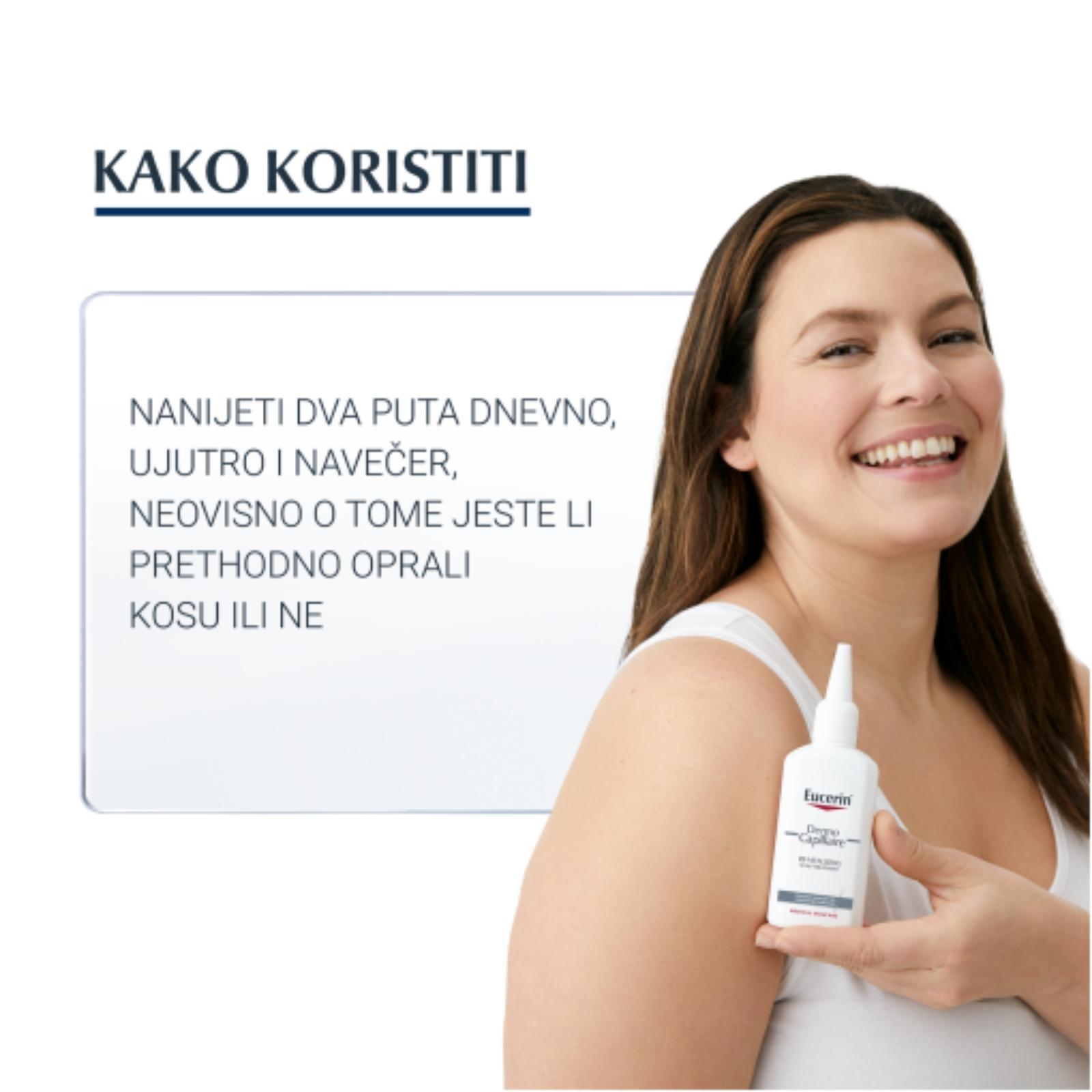 Kad se redovito koristi, tretman protiv stanjivanja kose podupire rast kose i stimulira folikul kose. Koristite u kombinaciji s Eucerin DermoCapillaire revitalizirajućim šamponom.