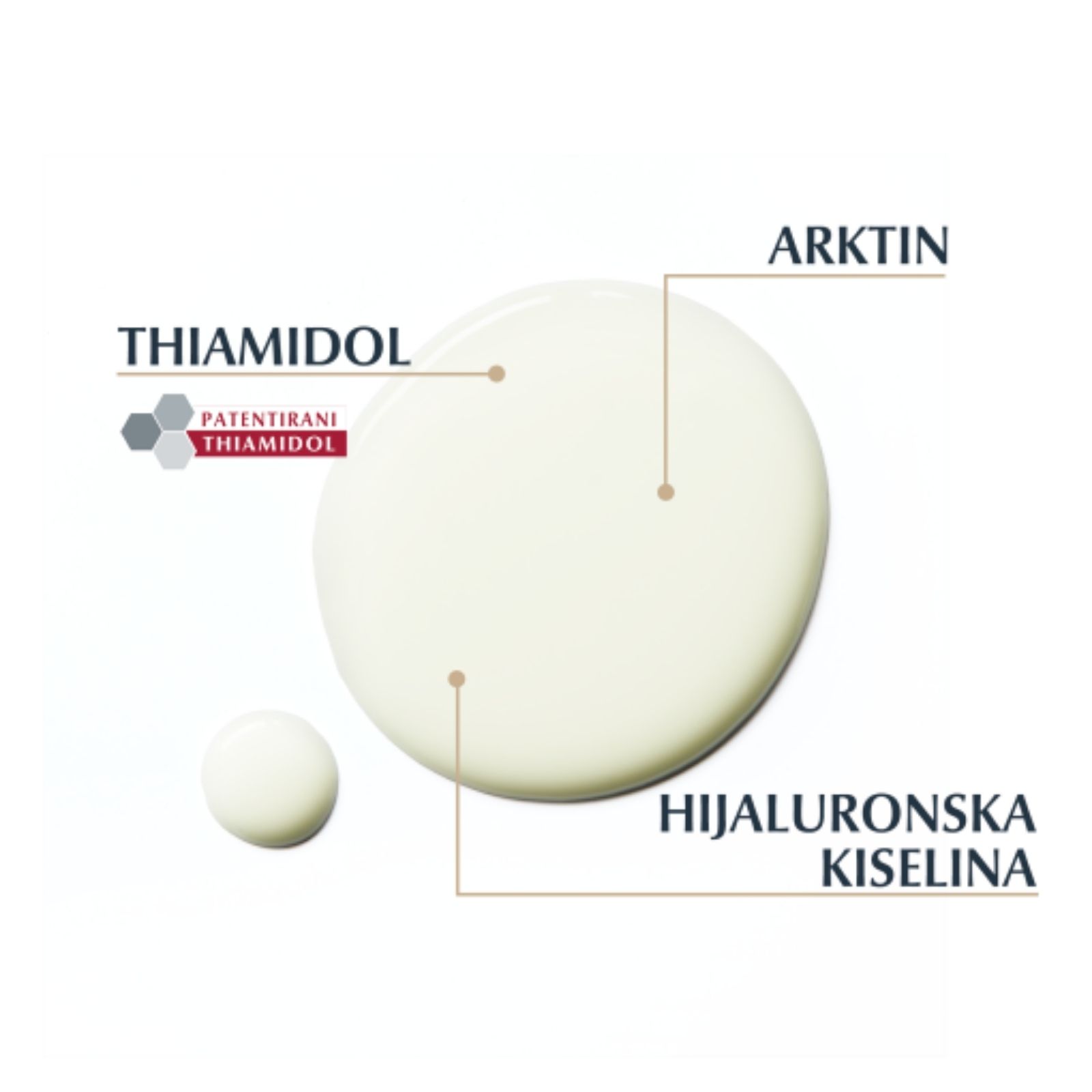 Formula uključuje thiamidol. Patentirani Eucerin sastojak koji djeluje na pojavu hiperpigmentacije, inovativnu kombinaciju visoko i niskomolekularne hijalurnoske kiseline te aktivni sastojak arktin koji dokazano ubrzava obnovu kolagena u stanicama kože. U formuli, zajedno s hijaluronskom kiselinom, poboljšava elastičnost kože.