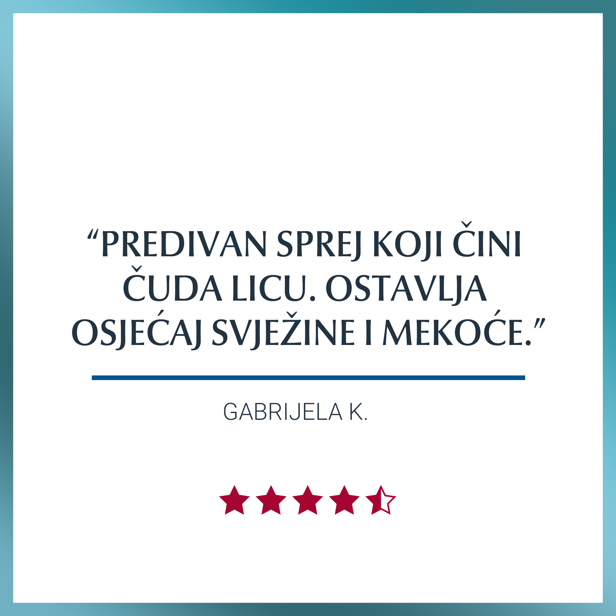 Svi sastojci: Aqua, Butylene Glycol, Sodium Hyaluronate, Glycerin, Glyceryl Glucoside, Pantolactone, Arginine HCL, Sodium Citrate, Citric Acid, Trisodium EDTA, Sodium Hydroxide, 1,2-Hexanediol, Phenoxyethanol