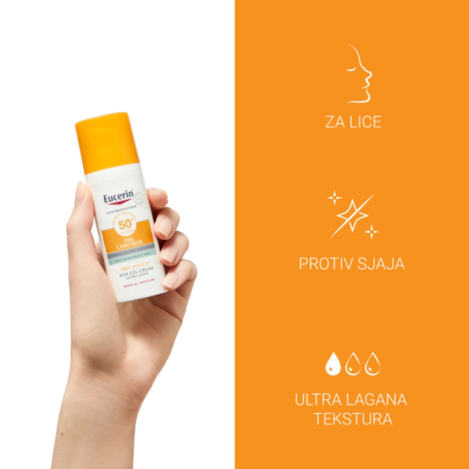 Eucerin Oil Control Dry Touch gel krema za tijelo SPF 50 iznimno je lagana, nemasna krema za tijelo za zaštitu od sunca.