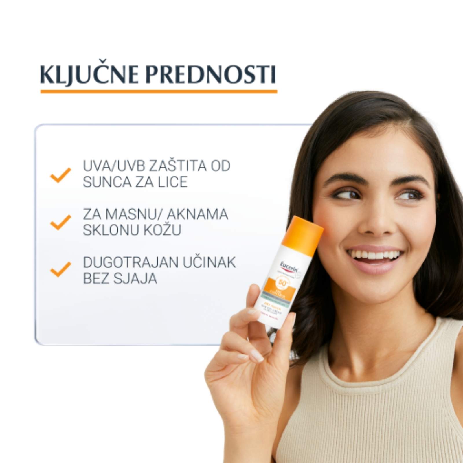 Eucerin Oil Control Dry Touch gel-krema za zaštitu kože lica od sunca SPF 50+ – za masnu kožu