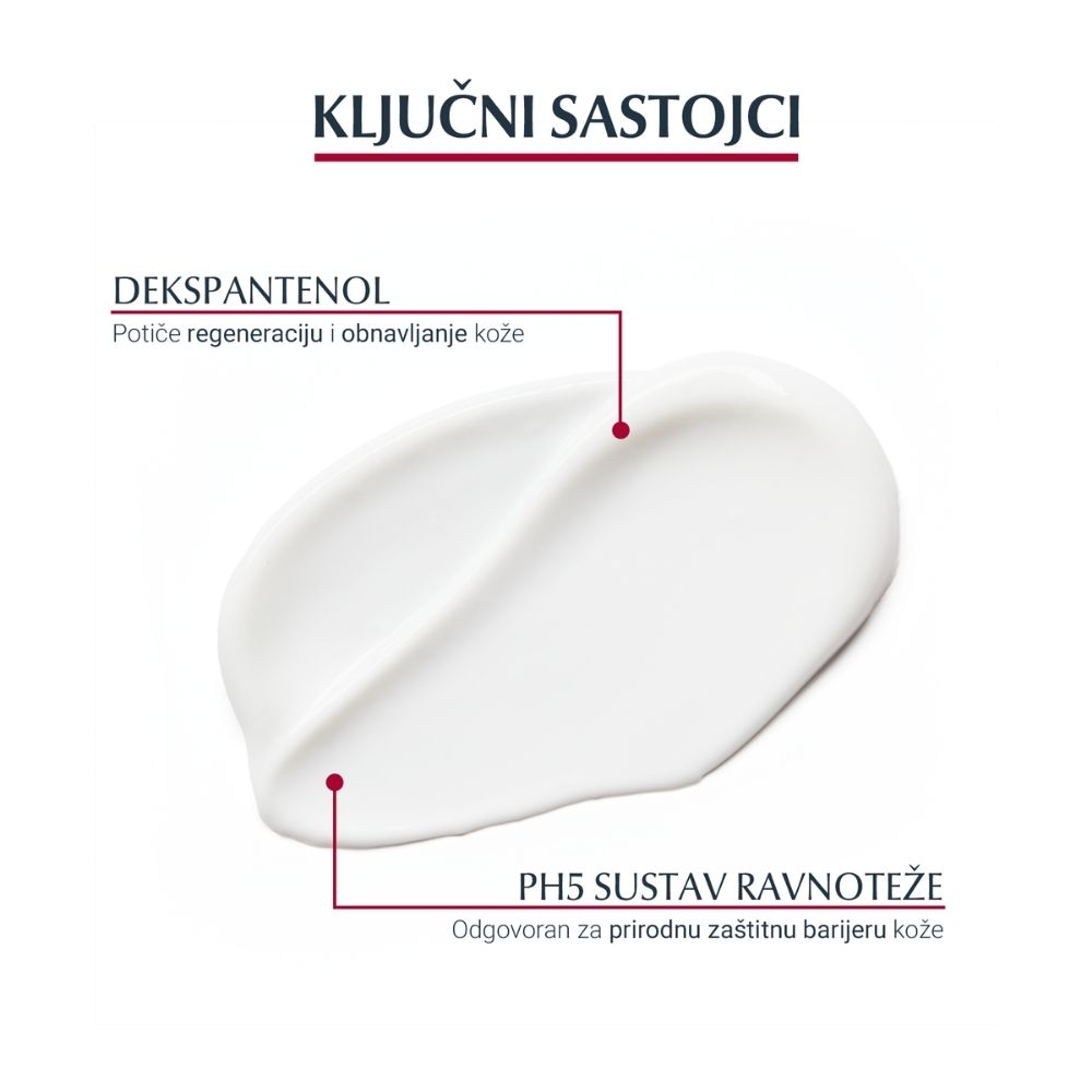 Formula sadrži Eucerin pH Balance System s citratnim puferom koji pomaže obnoviti i održati optimalnu pH vrijednost kože te poduprijeti njezinu prirodnu zaštitnu barijeru. Dodatno je obogaćena dekspantenolom, poznatim po svojim regenerativnim svojstvima, koji pomaže umiriti kožu i podržati njezinu obnovu.