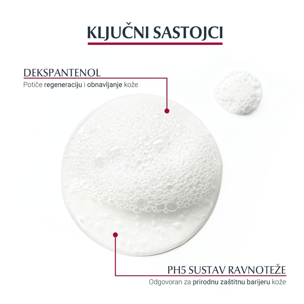 Sadrži Eucerin pH Balance System s citratnim puferom, koji pomaže obnoviti i stabilizirati optimalnu pH vrijednost kože, dok iznimno blagi surfaktanti omogućuju nježno svakodnevno čišćenje. Formula je dodatno obogaćena dekspantenolom, poznatim po svojim regenerativnim svojstvima, koji pomaže njegovati i umiriti osjetljivu kožu.