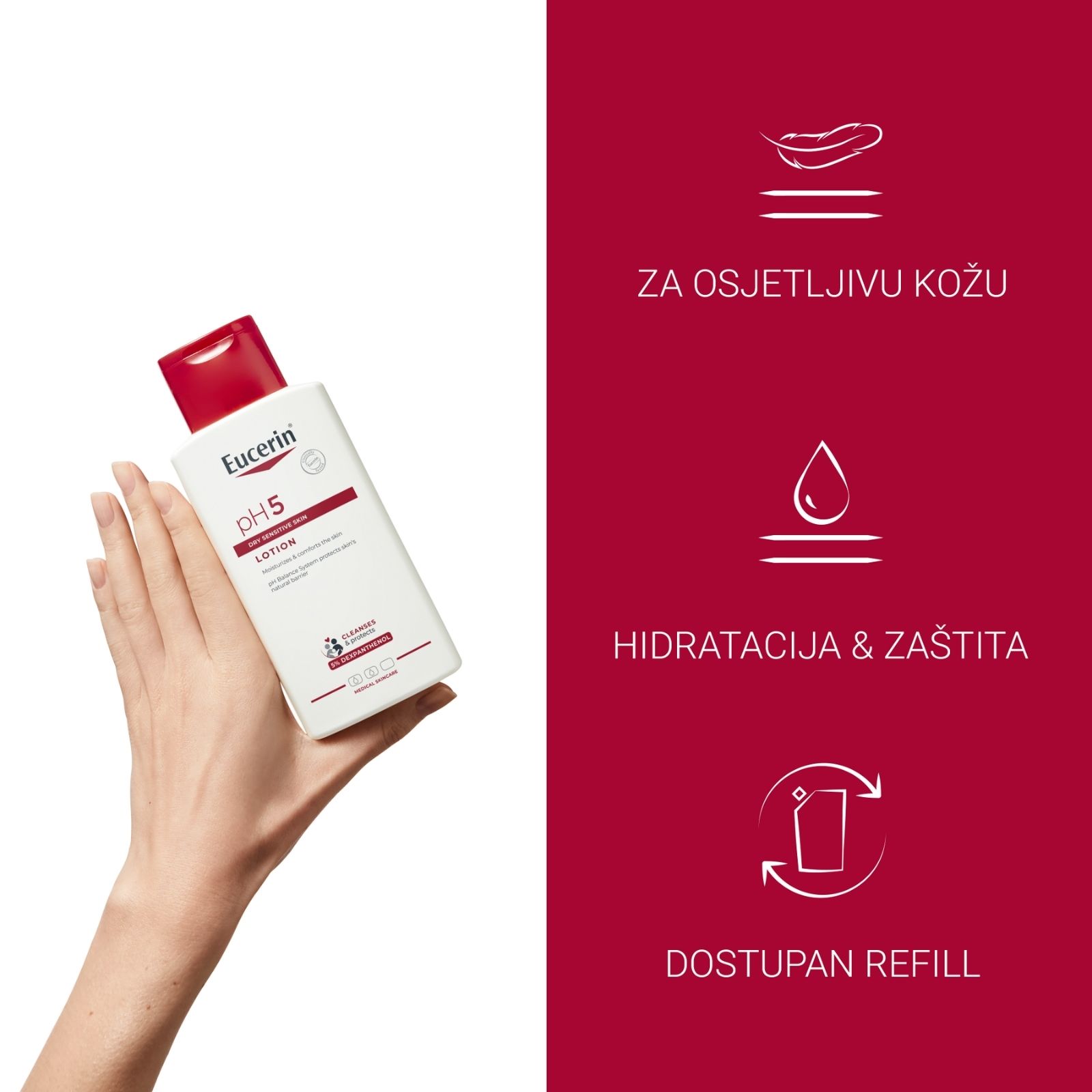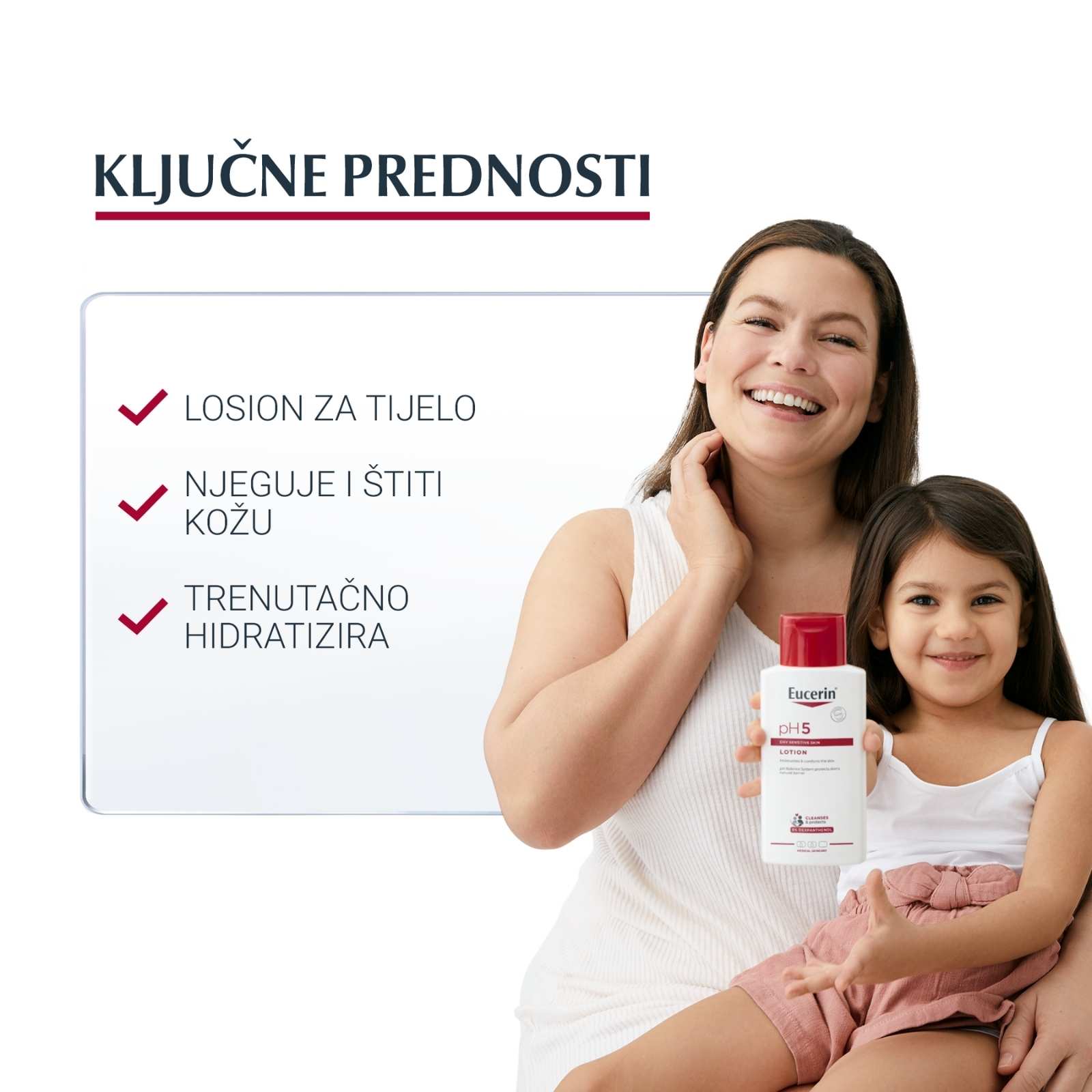 Eucerin pH5 losion idealan je za svakodnevnu njegu suhe i osjetljive kože, uključujući kožu sklonu alergijama.