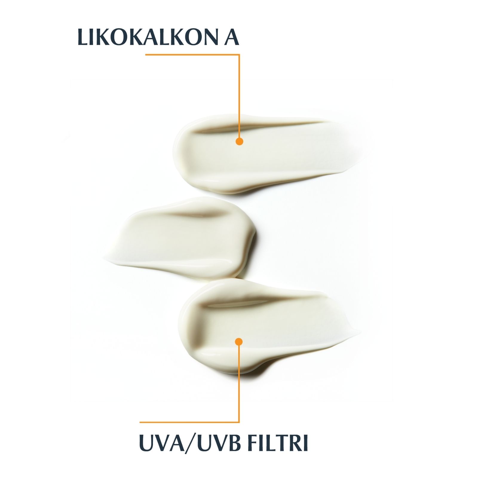 Napredna spektralna tehnologija kombinira širokopojasne i fotostabilne UVA/UVB filtre za visoku UV zaštitu s licochalconom A za neutraliziranje slobodnih radikala uzrokovanih UV i HEVIS svjetlošću.