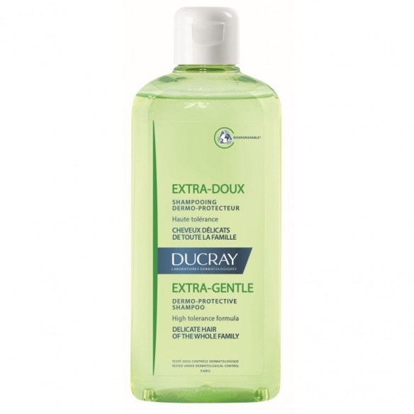 Extra doux dermozaštitni šampon sadži visoko podnošljivu formulu. Pogodan je za osjetljivu kosu cijele obitelji. Daje kosi mekoću, podatnost i sjaj. Ne nadražuje oči. Biorazgradiva formula*.