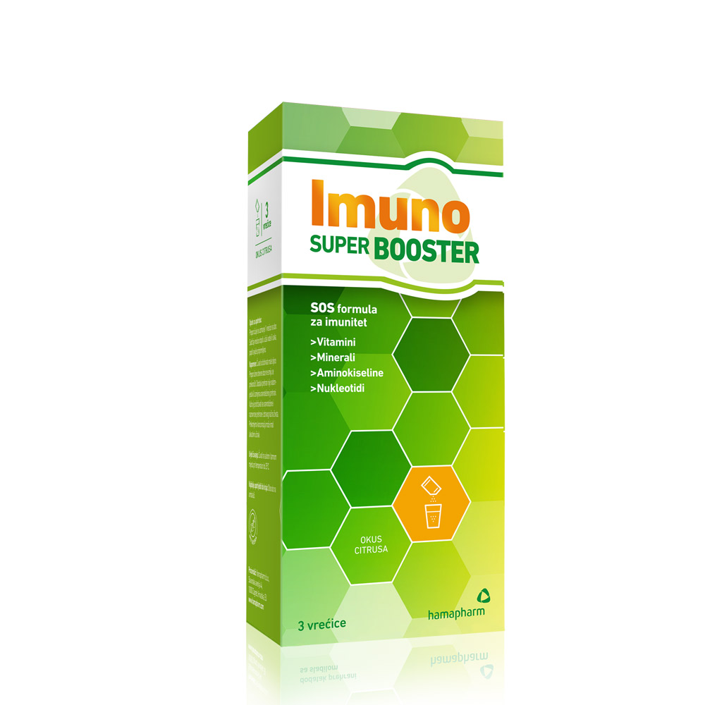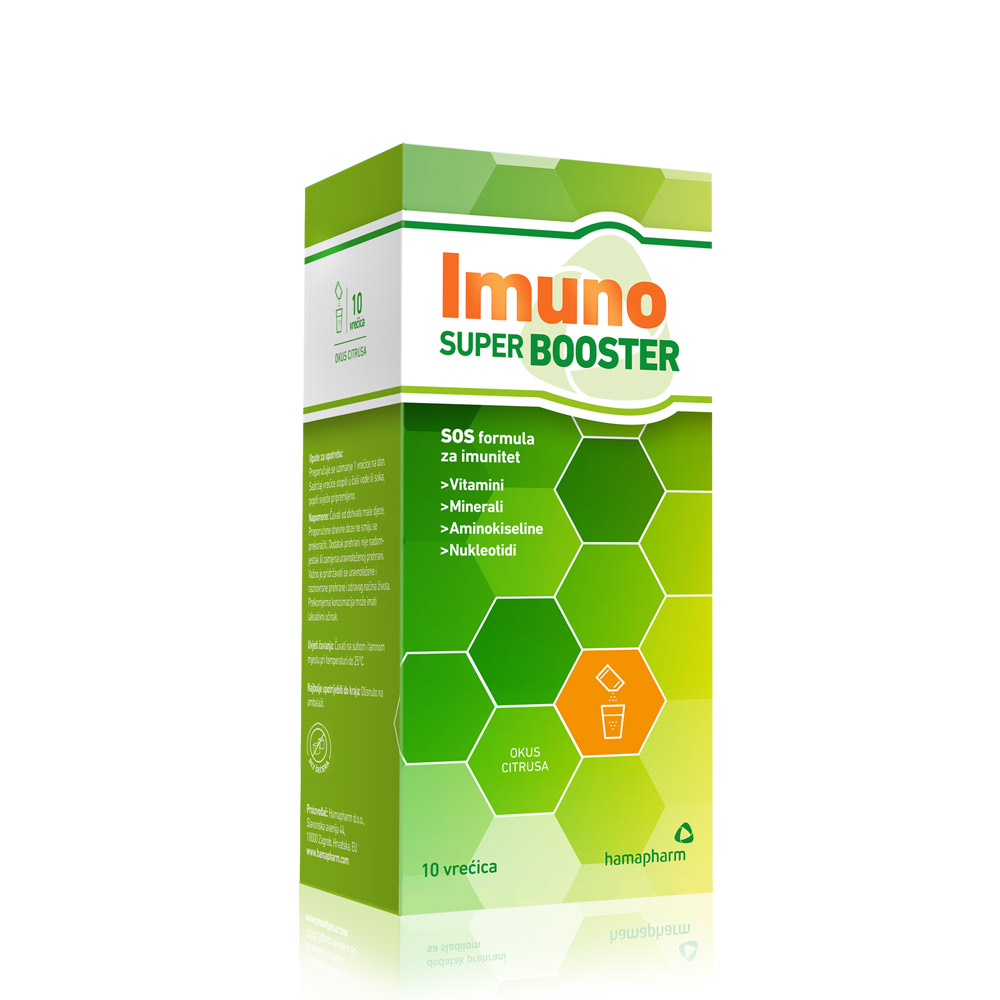 SOS formula za imunitet i energiju! Imuno Super Booster granule sadrže booster doze vitamina, minerala, aminokiselina i nukleotida.