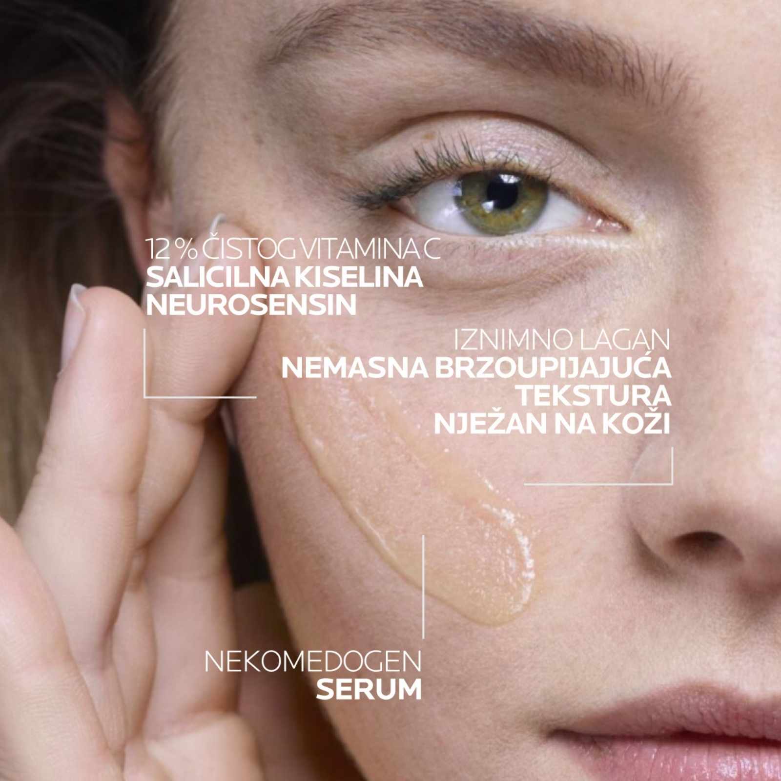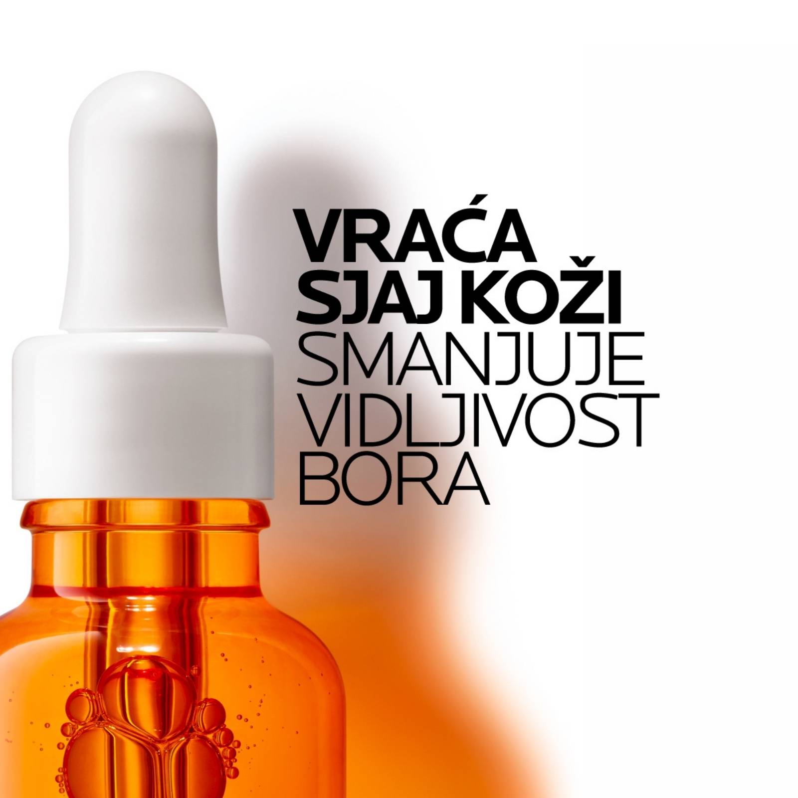 • 12% ČISTOG VITAMINA C: Referentni dermatološki aktivni sastojak protiv znakova starenja koji vraća sjaj koži te zaglađuje bore i sitne linije tijekom vremena. Vitamin C također smanjuje pojavu tamnih mrlja te doprinosi ujednačenijem tenu.
