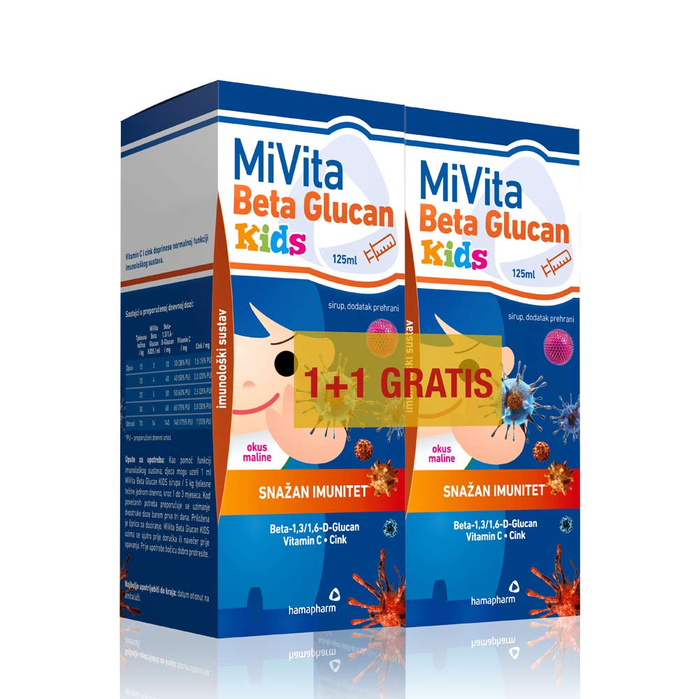 MiVita Beta Glucan Kids je sirup za snažan imunitet kod djece. Sadrži visoku dozu visokopročišćenog beta glukana, vitamin C i cink.