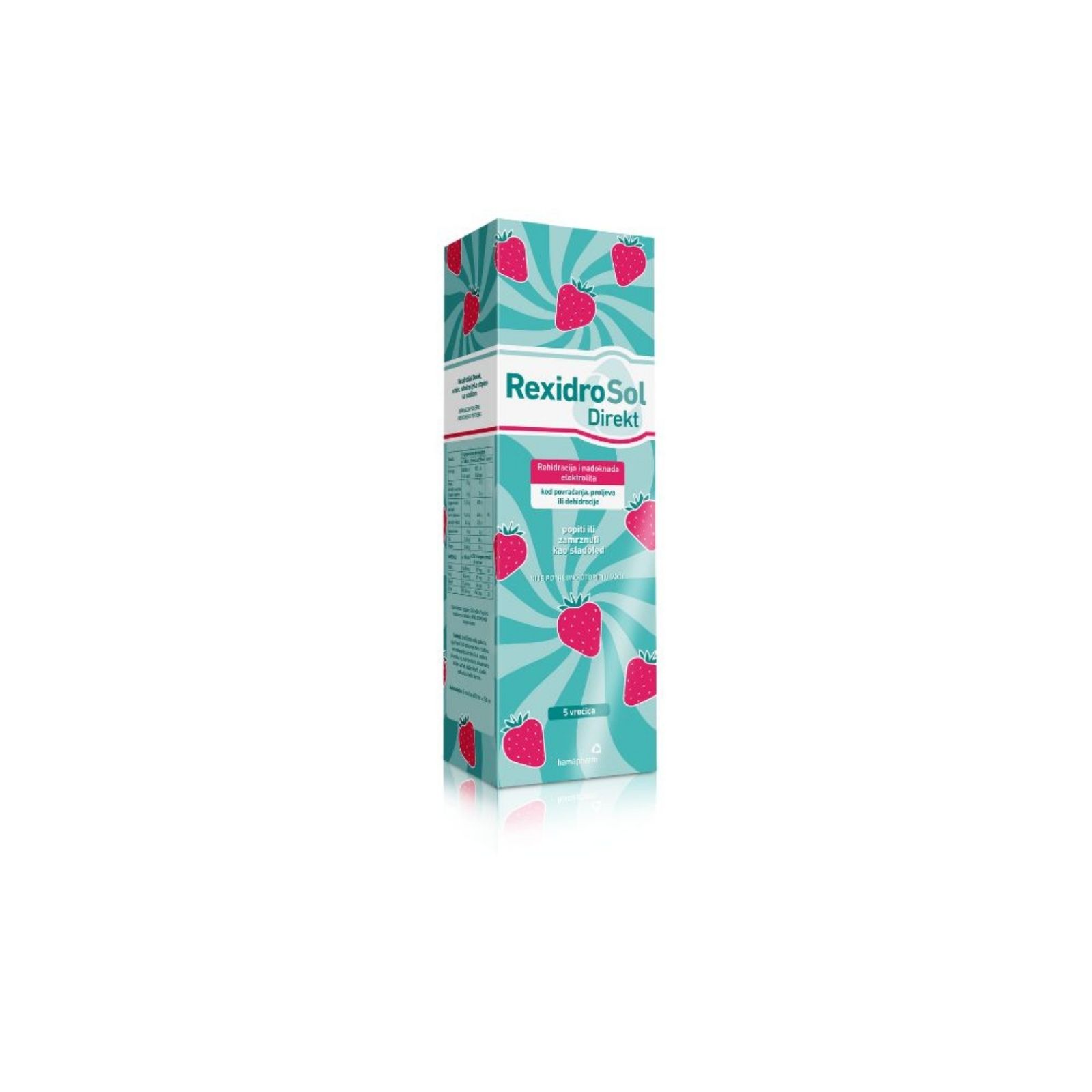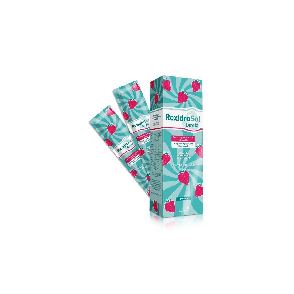 RexidroSol Direkt je oralna rehidracijska otopina s okusom jagode namijenjena za nadoknadu tekućine i elektrolita kod stanja poput proljeva i povraćanja. Formuliran je za dijetalnu prehranu bolesnika s povećanim gubitkom vode i minerala te pomaže u brzoj rehidraciji organizma i održavanju ravnoteže elektrolita.