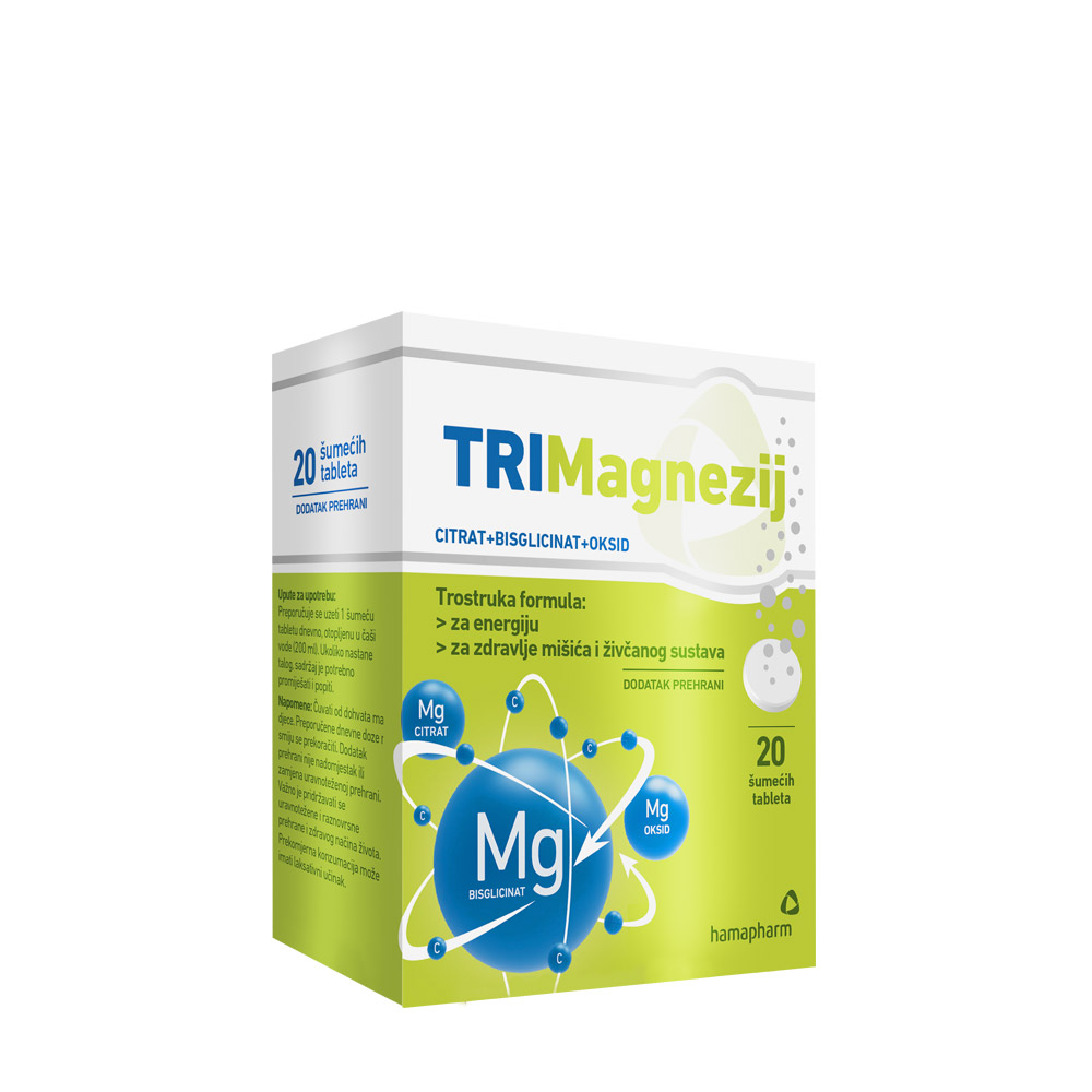 TRIMagnezij šumeće tablete su idealna kombinacija tri oblika magnezija za 5 puta veću iskoristivost, bolju apsorpciju i bioraspoloživost u organizmu!