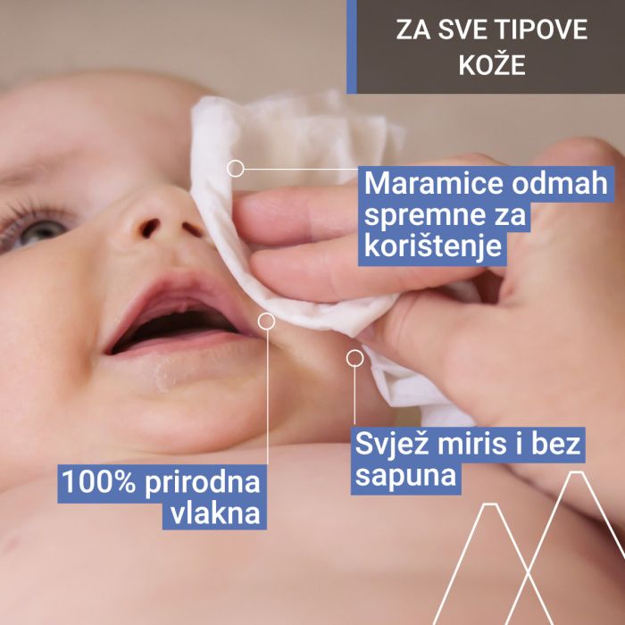 Prve vlažne maramice za bebe s termalnom vodom i organskim ekstraktom runolista, za lice, tijelo i pelensko područje.