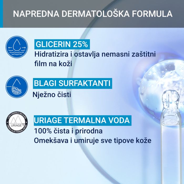 Ulje za kupanje koje je idealno za svakodnevnu njegu i higijenu osjetljive kože. Učinkovito čisti i hidratizira kožu sklonu isušivanju. Sadrži visoku koncentraciju glicerina koji ima ulogu u hranjenju i njegovanju kože te pridonosi zaštiti kože od vanjskih utjecaja. Dodatak Shea maslaca ima umirujuće djelovanje i smanjuje osjećaj nelagode i svrbež. Nježni i supermasni agensi za pranje pridonose ublažavanju isušivanja kože.