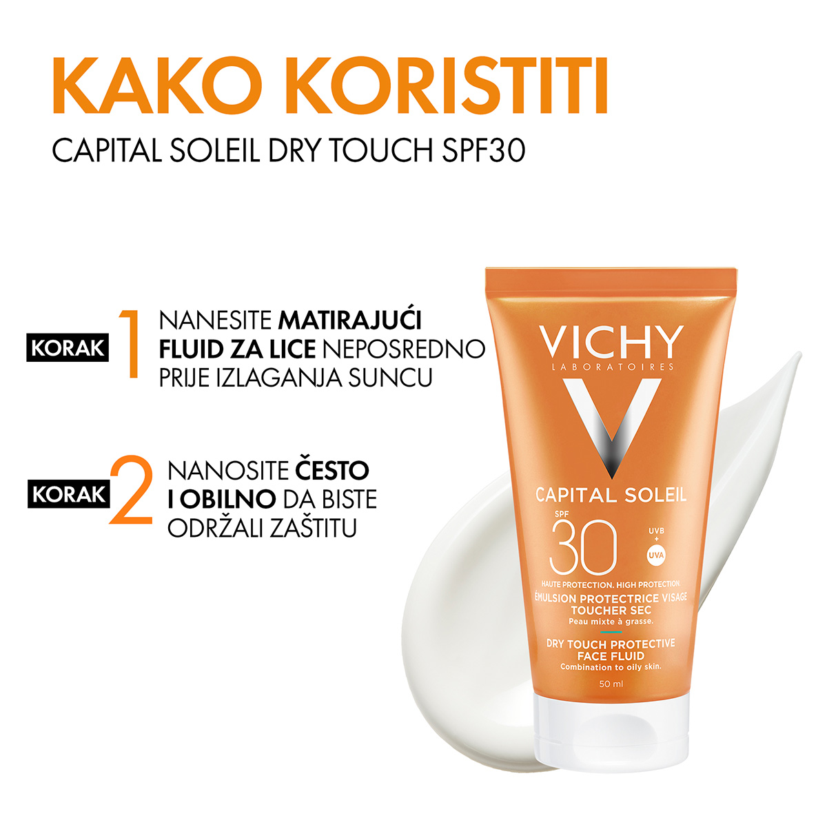 Capital Soleil Dry Touch Matirajući zaštitni fluid za lice SPF 30 zahvaljujući tehnologiji Airlicium pruža četverostruku naprednu UV zaštitu i 12-satni mat učinak.