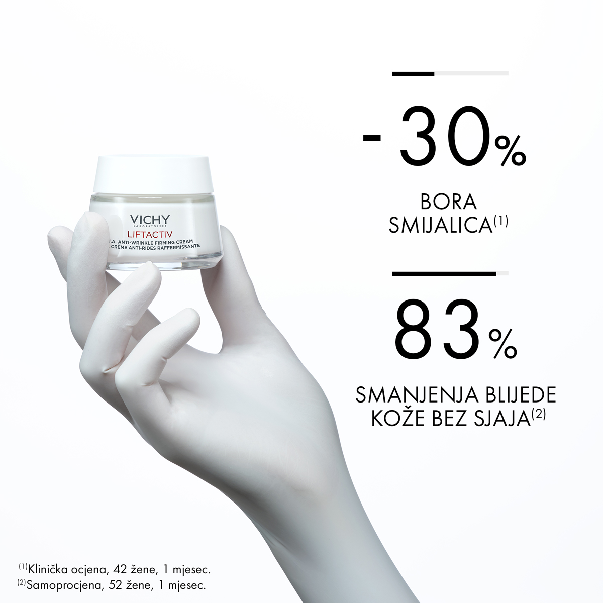Vichy rješenje je H.A. DNEVNA NJEGA ZA KOREKCIJU BORA I ČVRSTOĆU KOŽE. Namijenjena je za sitne linije, bore i gubitak popunjenosti kože.