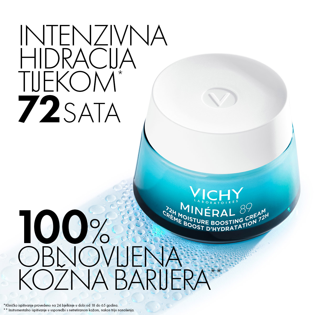 • Nanesite dva poteza prstom Minéral 89 KREME ZA INTENZIVNU HIDRACIJU TIJEKOM 72 SATA, ujutro i navečer na čisto lice i umasirajte je u kožu.